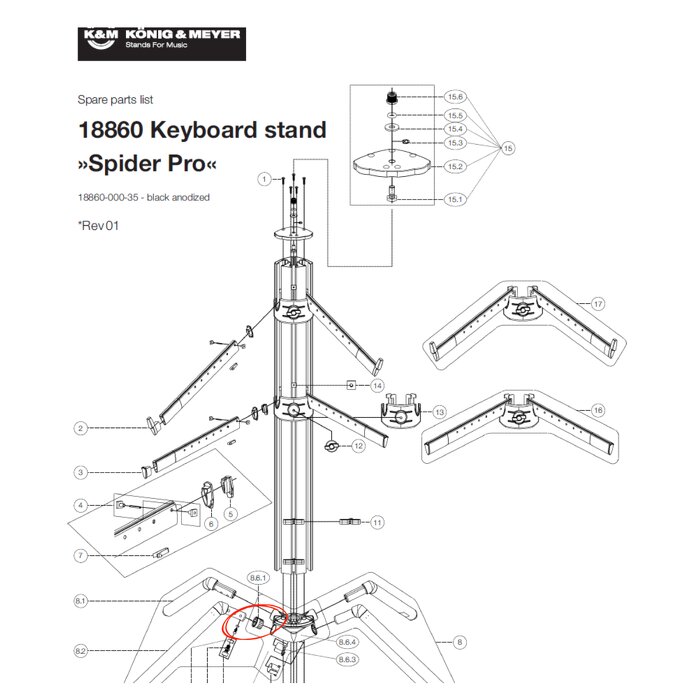 Kruhový spoj mezi nohy a "tělo" klávesového stojanu Spider Pro. Barva černá. viz nákres