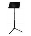 Ocelový notový pult s plastovou rozkládací deskou. Stojan je trojdílný a může být vysunut velmi vysoko. Výška 720/1550 mm. Rozměry desky 505 x 340 mm. Vyrábí se v černé barvě. Součástí balení je nylonový transportní obal.