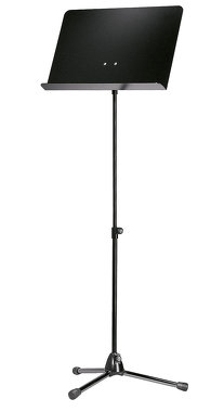 Profesionální ocelový notový pult s odnímatelnou hliníkovou deskou a skládacími nohami. Přesné připevnění desky pomocí V-bloku. Deska o tloušťce 3 mm se dá použít také jako psací plocha. Výška 680/1210 mm. Rozměry desky 520 x 360 x 57 mm. Vyrábí se v černé barvě.
