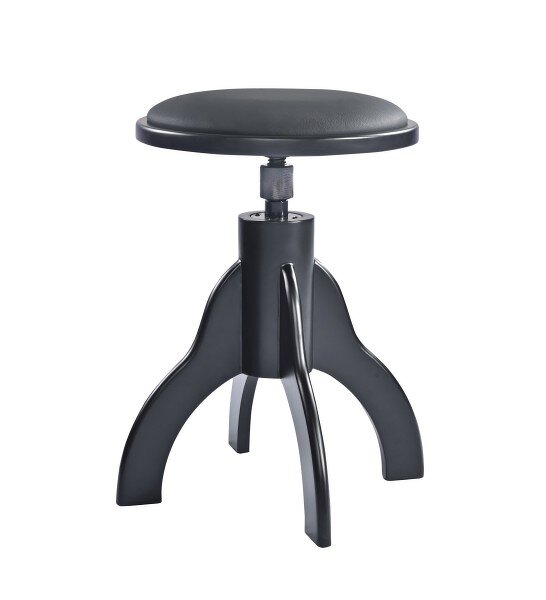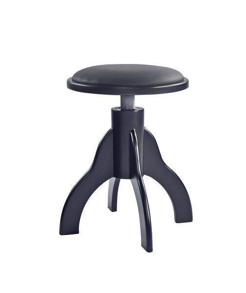Praktická kvalitní klavírní stolička z masivního dřeva je ideální pro hru na klavír a klávesové nástroje. Černý matný polyesterový lak v kombinaci s černým čalouněním z imitace kůže působí moderně a harmonicky.