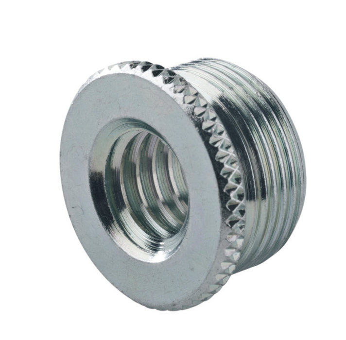 Pozinkovaná redukce mezi mikrofonní stojan a mikrofonní klipsnu 3/8" F - 5/8" M.